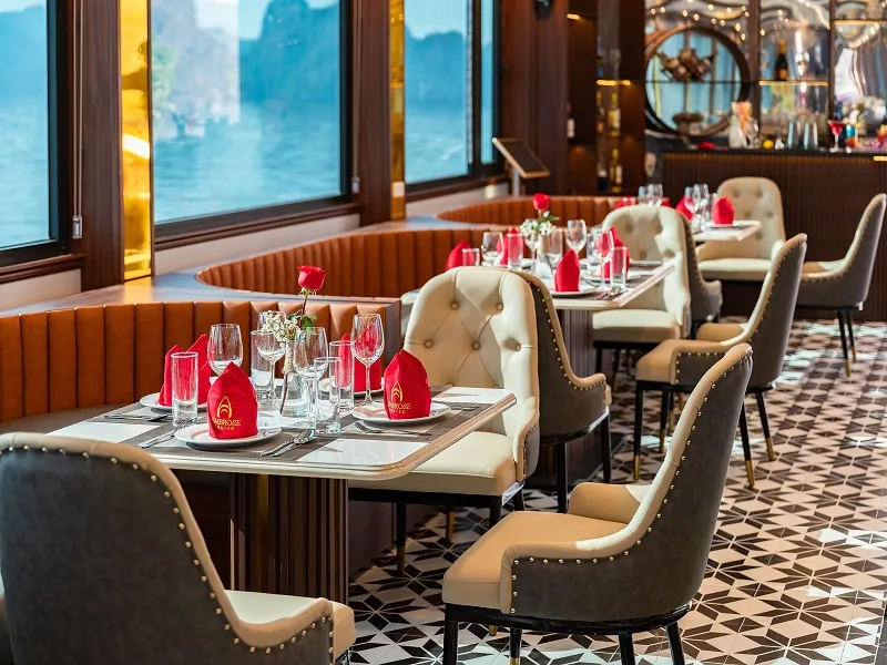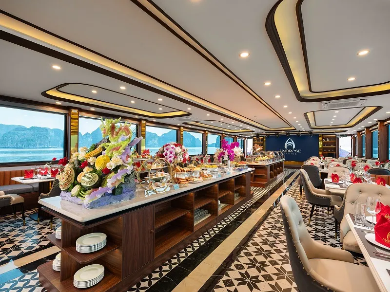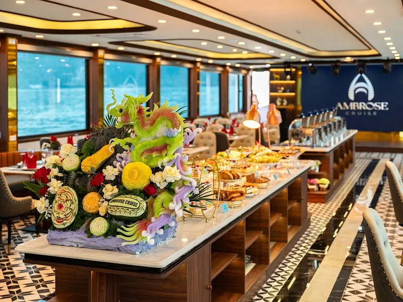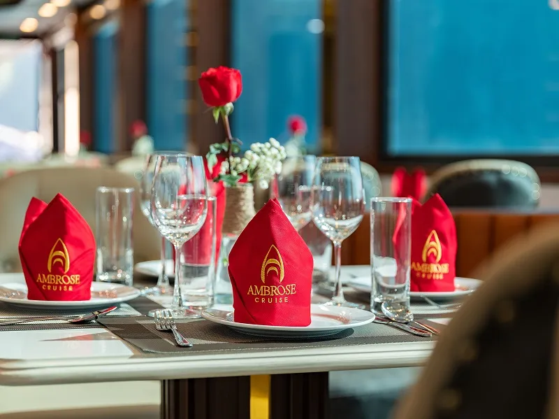 Với sự kết hợp giữa ẩm thực tinh tế và không gian sang trọng, du thuyền Ambrose Cruise hứa hẹn mang đến cho du khách những trải nghiệm ẩm thực đáng nhớ trong hành trình khám phá vịnh Hạ Long.