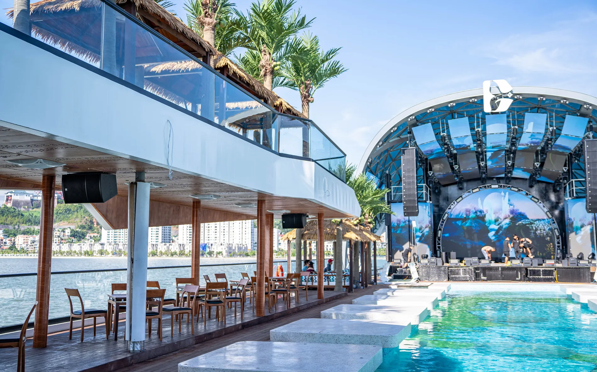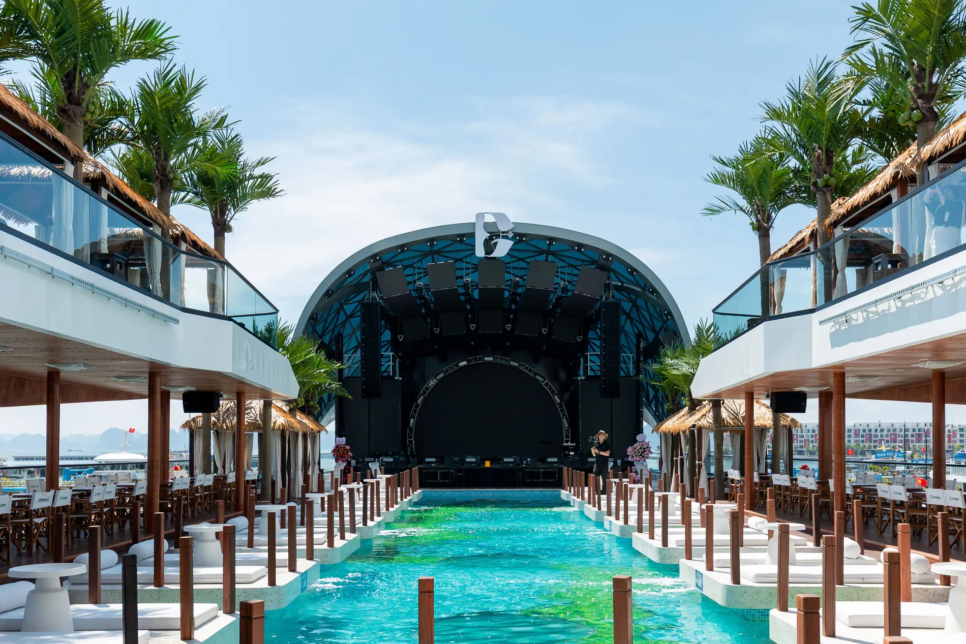Sân khấu mái vòm nổi đầu tiên trên vịnh trang bị hệ thống âm thanh – ánh sáng tối tân là địa điểm lý tưởng để tổ chức các chương trình ca nhạc, biểu diễn nghệ thuật hay sự kiện đặc biệt.