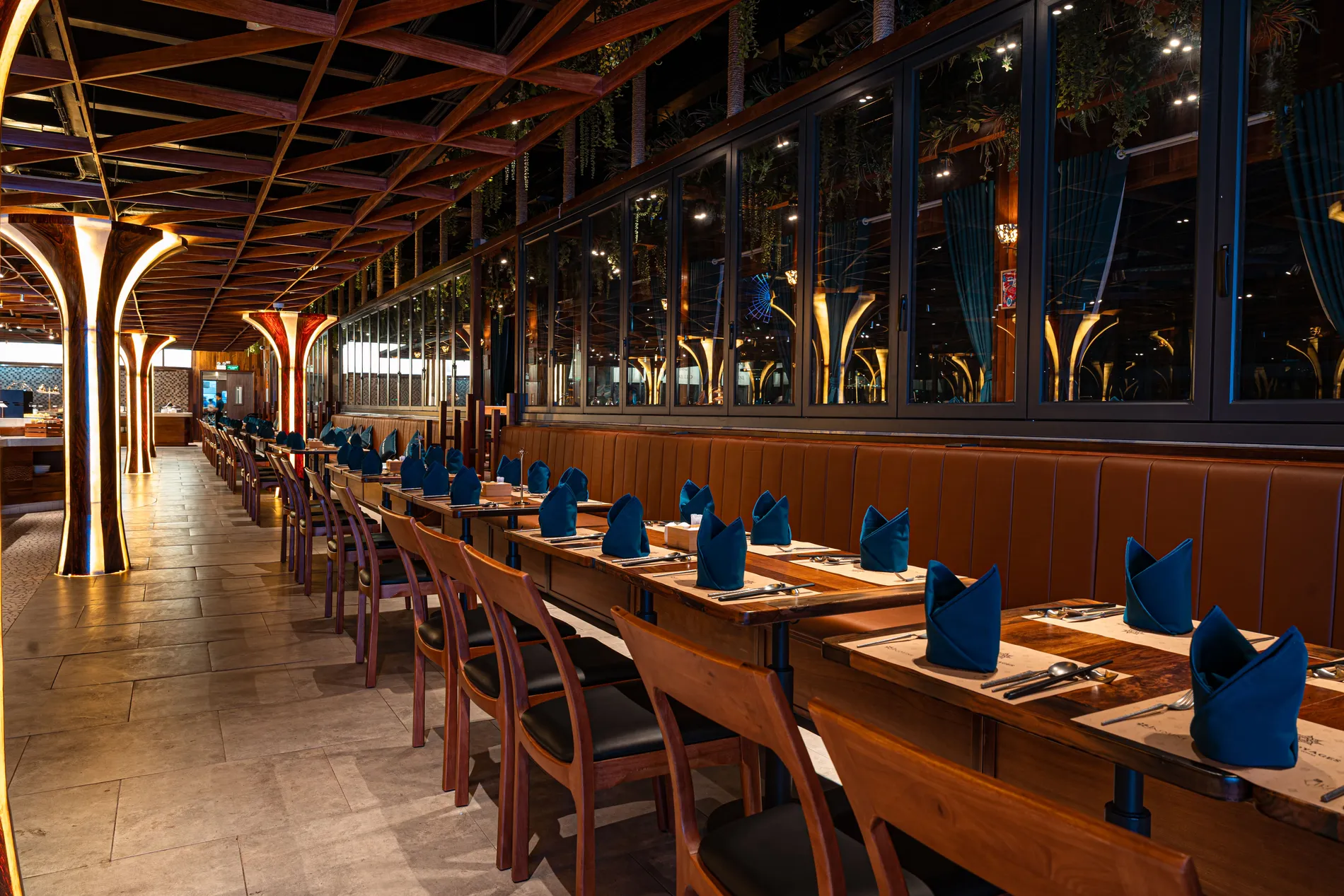 Thưởng thức Buffet tối trong không gian nhà hàng sang trọng thiết kế độc đáo.