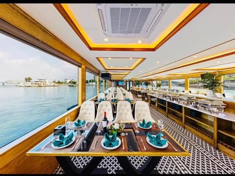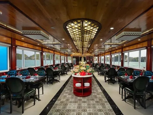 Bên cạnh đó, các món ăn truyền thống như xôi chả, bánh đúc, hay nem rán cũng được phục vụ, mang đến hương vị đậm đà của miền Bắc. Không gian du thuyền với những cửa sổ lớn, mở ra cảnh biển tuyệt đẹp, làm cho mỗi bữa ăn trở thành một trải nghiệm không thể quên, vừa thưởng thức ẩm thực, vừa tận hưởng vẻ đẹp của Vịnh Hạ Long.