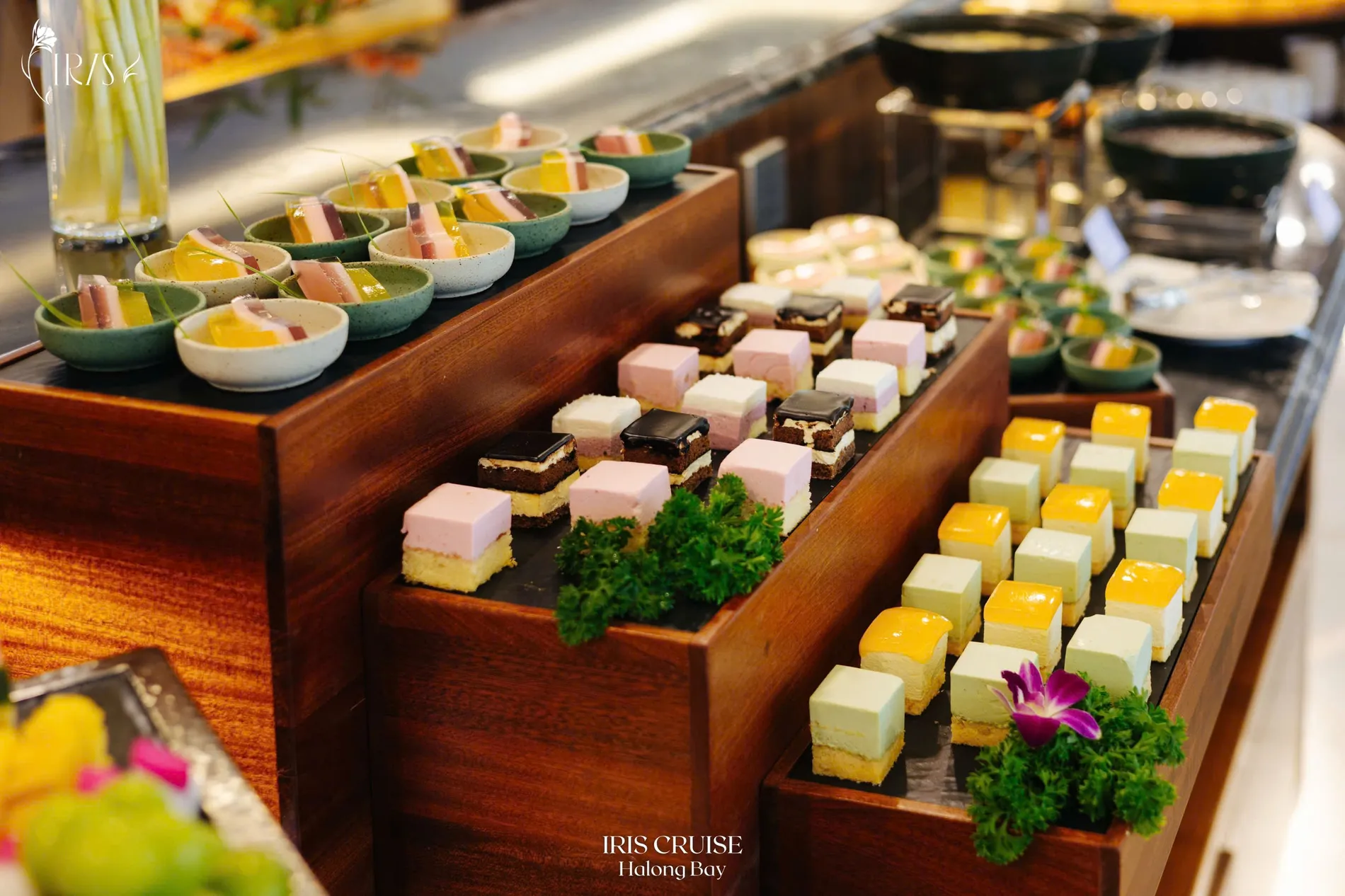Trải nghiệm tinh hoa ẩm thực thượng lưu chạm đến mọi giác quan của thực khách trong không gian nhà hàng sang trọng trên siêu du thuyền Sea Stars, nơi khung cảnh thanh bình của vịnh biển kết hợp nghệ thuật ẩm thực tinh tế.