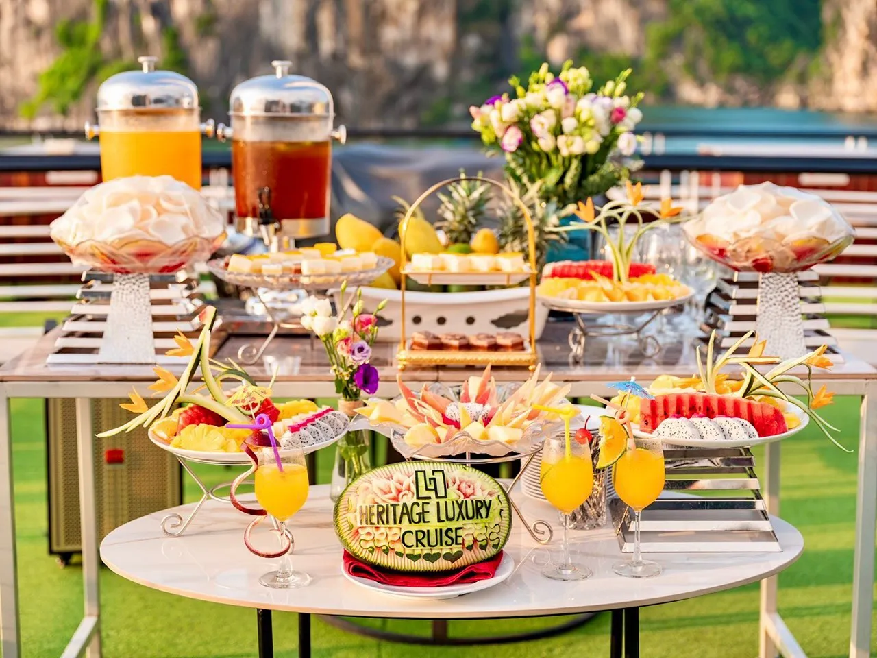 Du thuyền trong ngày sang trọng của Hạ Long Heritage là du thuyền thép sang trọng nhất tại Vịnh Hạ Long – Việt Nam, không chỉ về chất lượng mà còn về dịch vụ, đồ ăn, hành trình của tàu du lịch. Du thuyền Hạ Long Heritage đạt tiêu chuẩn quốc tế 5 sao, với trang thiết bị sang trọng, đường nét tinh tế của thời Phục Hưng. Du thuyền Hạ Long Heritage tự hào cung cấp các tiện nghi chất lượng cao và dịch vụ đặc biệt cho khách hàng. Chúng tôi sẽ nỗ lực hết mình để kỳ nghỉ của bạn tại Vịnh Hạ Long trở nên dễ chịu và tuyệt vời nhất có thể