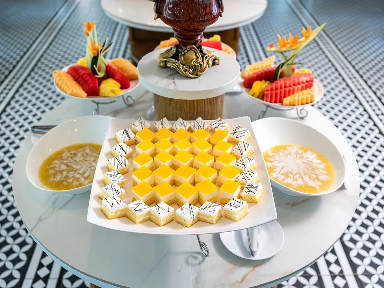 Quý khách sẽ tham dự một bữa tiệc nhỏ với trà, nước ép trái cây, trái cây và bánh ngọt được phục vụ miễn phí trong lúc ngắm hoàng hôn đang dần buông xuống. Đây sẽ là một trong những khoảnh khắc để lại ấn tượng sâu sắc nhất trong lòng quý khách xuyên suốt chuyến đi.