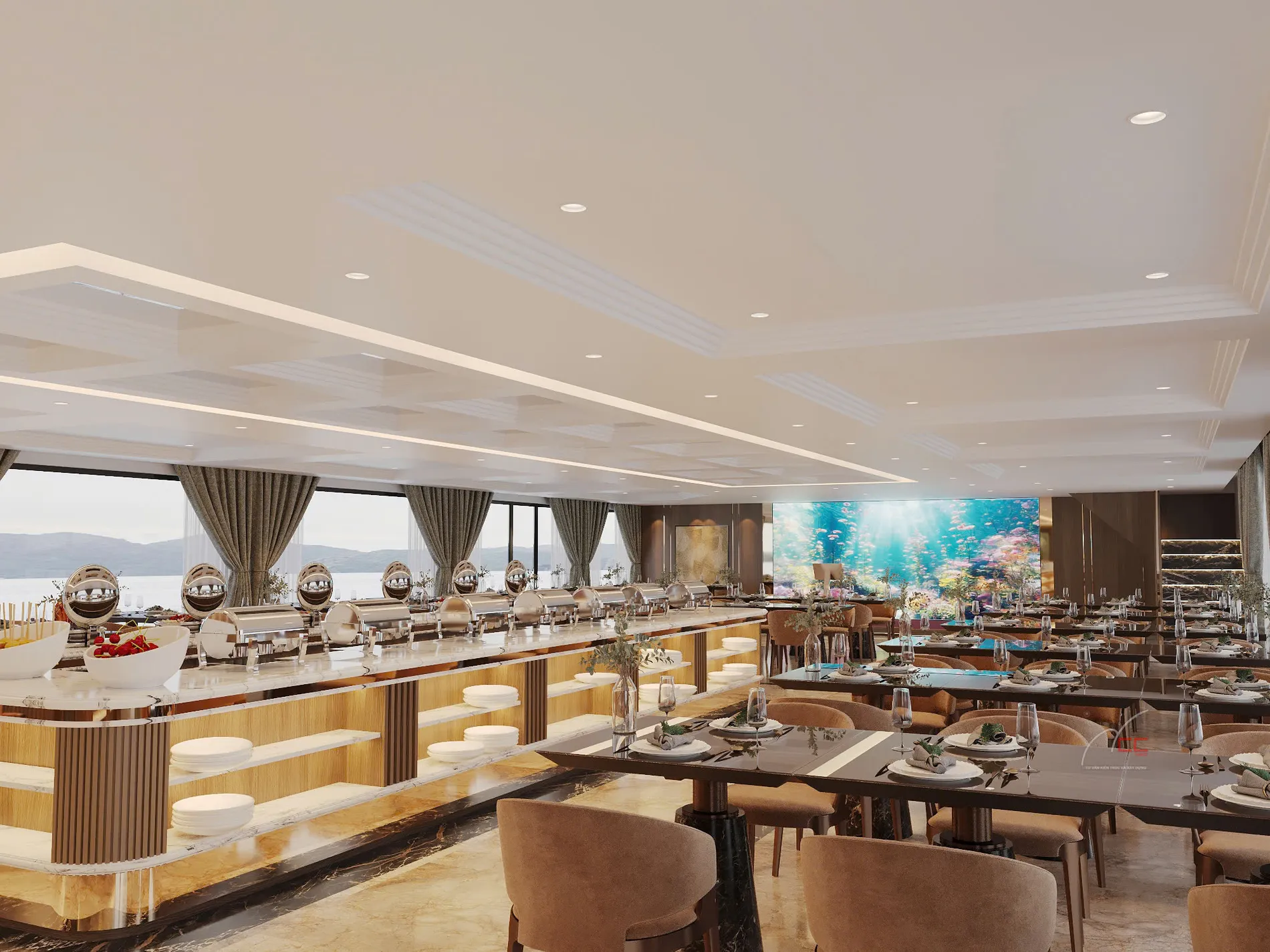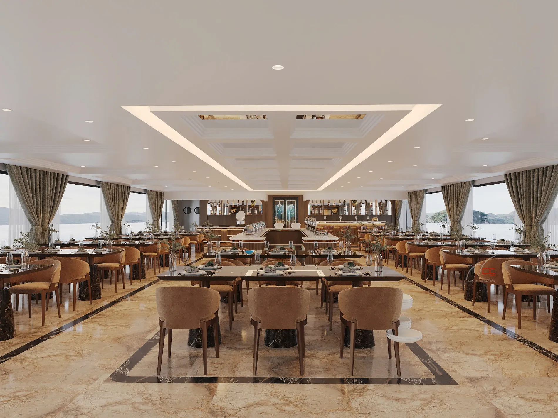19:15. Thưởng thức bữa tối sang trọng tại nhà hàng.